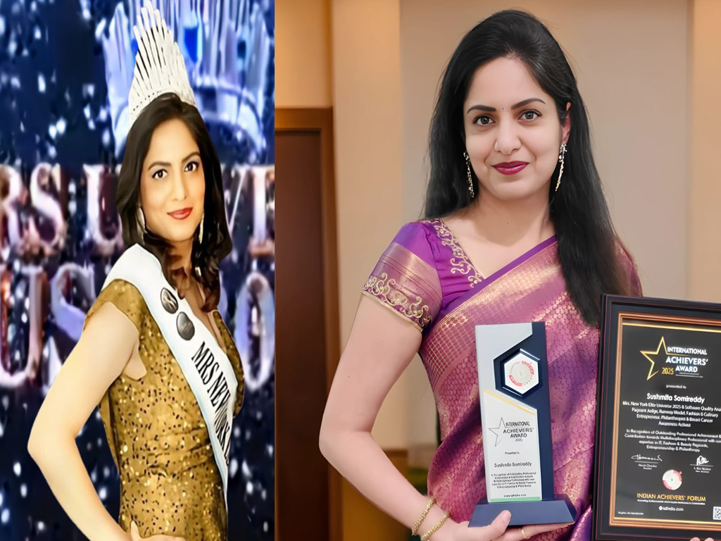 అచ్చతెలుగు అందం అగ్రరాజ్యం అమెరికాలో మెరిసింది. రాజమహేంద్రవరం నగరానికి చెందిన సుష్మిత సోమిరెడ్డి న్యూయార్క్ అందాల తారగా నిలిచింది. మిసెస్ న్యూయార్క్ 2025 కిరీటాన్ని దక్కించుకుంది. అమెరికాలో